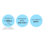 | 備考 | 次亜塩素酸で空気を洗浄する、空間除菌脱臭機「ジアイーノ」。「ジアイーノ」は、空間の除菌、脱臭にすぐれています。 ジアイーノはパナソニック株式会社の商標です。 次亜塩素酸は機器内で水道水と専用塩タブレットで生成。 【スペック】 ●サイズ:W505×D307×H710mm ●重量:約17kg ●電源:交流100V 50/60Hz ●最大風力:5(強)4(中)2(弱)m²/分 ●消費電力:42(強)26(中)17(弱)W ●運転音:43(強)37(中)24(弱)dB ●タンク容量:7.8L(有効容量7.0L) ●排水量:0.8L ●連続運転時間:9.4(強)11.6(中)21.2(弱)時間 ●使用温度範囲:5~35℃ ●使用水/塩:水道水/指定塩 ■レンタル日数により 専用塩タブレットを付属します。 お問い合わせ下さいませ。 ※本製品は医療機器ではありません ※パチンコホールなどの喫煙環境で使用しないでください(機能の低下を招きます) (※1)浮遊ウイルス抑制【試験機関】(一財)北里環境科学センター 【試験方法】25m³の試験空間で浮遊ウイルス数の変化を測定 【除菌の方法】F-JPH60を中ノッチ※1で運転 【試験対象】浮遊したウイルス 【試験結果】8分後に99%抑制を確認 北生発24_0343_2号 ※1:F-JPH60の中ノッチはF-JDL50-Wの強ノッチに相当(メーカー推定)。メーカー推定の方法:気流シュミレーションによる。 (※1)付着ウイルス抑制【試験機関】(一財)北里環境科学センター 【試験方法】25m³の試験空間で付着ウイルス数の変化を測定 【除菌の方法】F-JDL50-Wを強ノッチで運転 【試験対象】付着したウイルス 【試験結果】1時間後に99%抑制を確認 北生発2015_2149 (※2)浮遊菌抑制【試験機関】(一財)北里環境科学センター 【試験方法】25m³の試験空間で浮遊菌数の変化を測定 【除菌の方法】F-JPH60を中ノッチ※2で運転 【試験対象】浮遊した菌 【試験結果】13分後に99%抑制を確認 北生発24_0343_1号 ※2:F-JPH60の中ノッチはF-JDL50-Wの強ノッチに相当(メーカー推定)。メーカー推定の方法:気流シュミレーションによる。 (※2)付着菌抑制【試験機関】(一財)北里環境科学センター 【試験方法】25m³の試験空間で付着菌の変化を測定 【除菌の方法】F-JDL50-Wを強ノッチで運転 【試験対象】付着した菌 【試験結果】1時間後に99%抑制を確認 北生発2015_0149 (※3)ニオイ(アンモニアの場合)【試験機関】パナソニック エコシステムズ株式会社 【試験方法】6畳試験室において一定濃度の臭い成分で満たし、ガス検知管法にて検証 【脱臭の方法】F-JDJ50-Wを運転(強)※3 【脱臭の対象】室内空気 【試験結果】60分で約95%減少(対初期濃度) ※3:F-JDJ50-Wの強ノッチはF-JDL50-Wの強ノッチに相当(メーカー推定)。メーカー推定の方法:気流シュミレーションによる。 #空気清浄 #除菌 #浄化 |